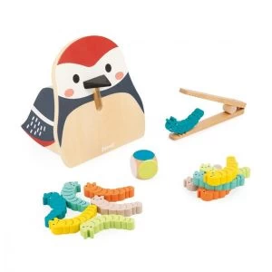 Janod Partenariat Wwf – Jeu Des Couleurs Pic Pic Et Chenilles En Bois – Couleurs Et Dextérité – Un Oiseau, 12 Chenilles, 1 P