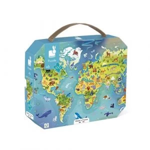 Janod Puzzle Carton – Puzzle Monde – 100 Pièces – Développe La Patience Et La Dextérité – Puzzle Carton Et Emballage Fsctm – F